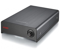 The Story Station combines a grey, brushed aluminium casing with the logo stencilled in red. The casing includes ventilation slits to facilitate even heat dissipation, while the USB 3.0 interface offers a maximum transfer rate of five gigabits per second (Gbps). Preloaded software suites include Samsung Auto Backup, SecretZone and SafetyKey for data encryption and password protection.