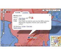 Google’s site features special Federal Election information viewable in Google Maps that will give users information about electorate boundaries, sitting members, candidates and margins. Using Google Maps’ easy-to-use interface, users will be able to zoom and pan, and see satellite imagery and road maps of all 150 Federal seats.