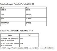 Vodafone and 3 Mobile have finally announced its data plans for the Apple iPad. Vodafone is set to offer an unlimited iPad pre-paid data plan for $49.95, while 3 will...
