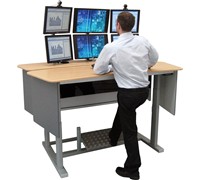The Ultimate activConsole from AME can accommodate up to 10 small LCD monitors or a combination of small and large monitors, each of which is adjustable for optimum viewing angle.